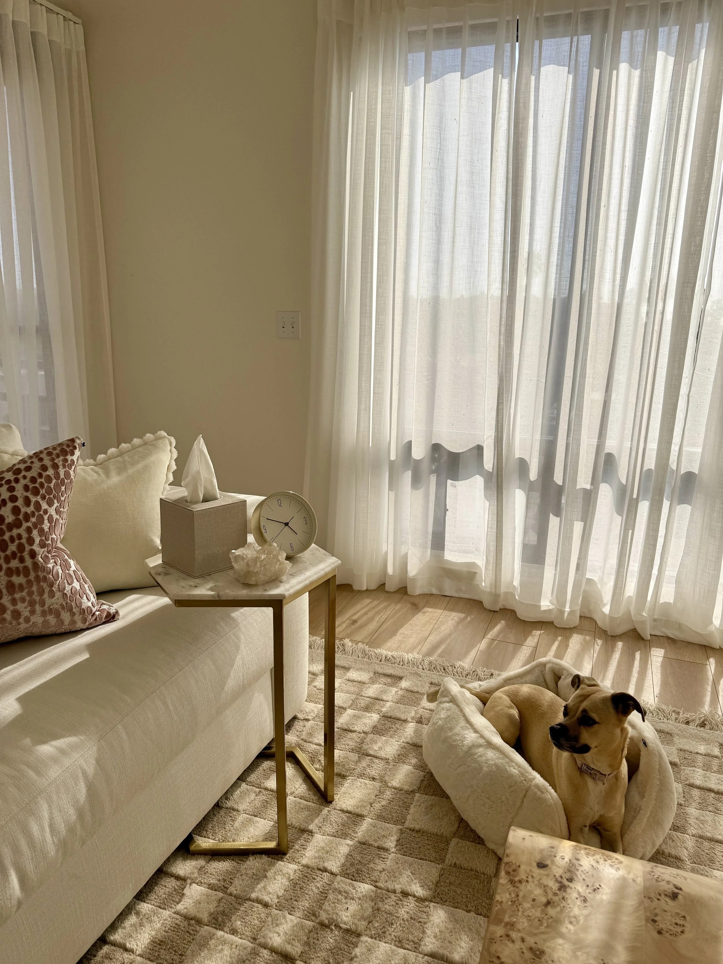 Mosa occasionally makes a guest appearance around the wellness studio and is known for her calm energy, gentle presence, and impressive ability to quietly settle into whatever sunny corner she finds.